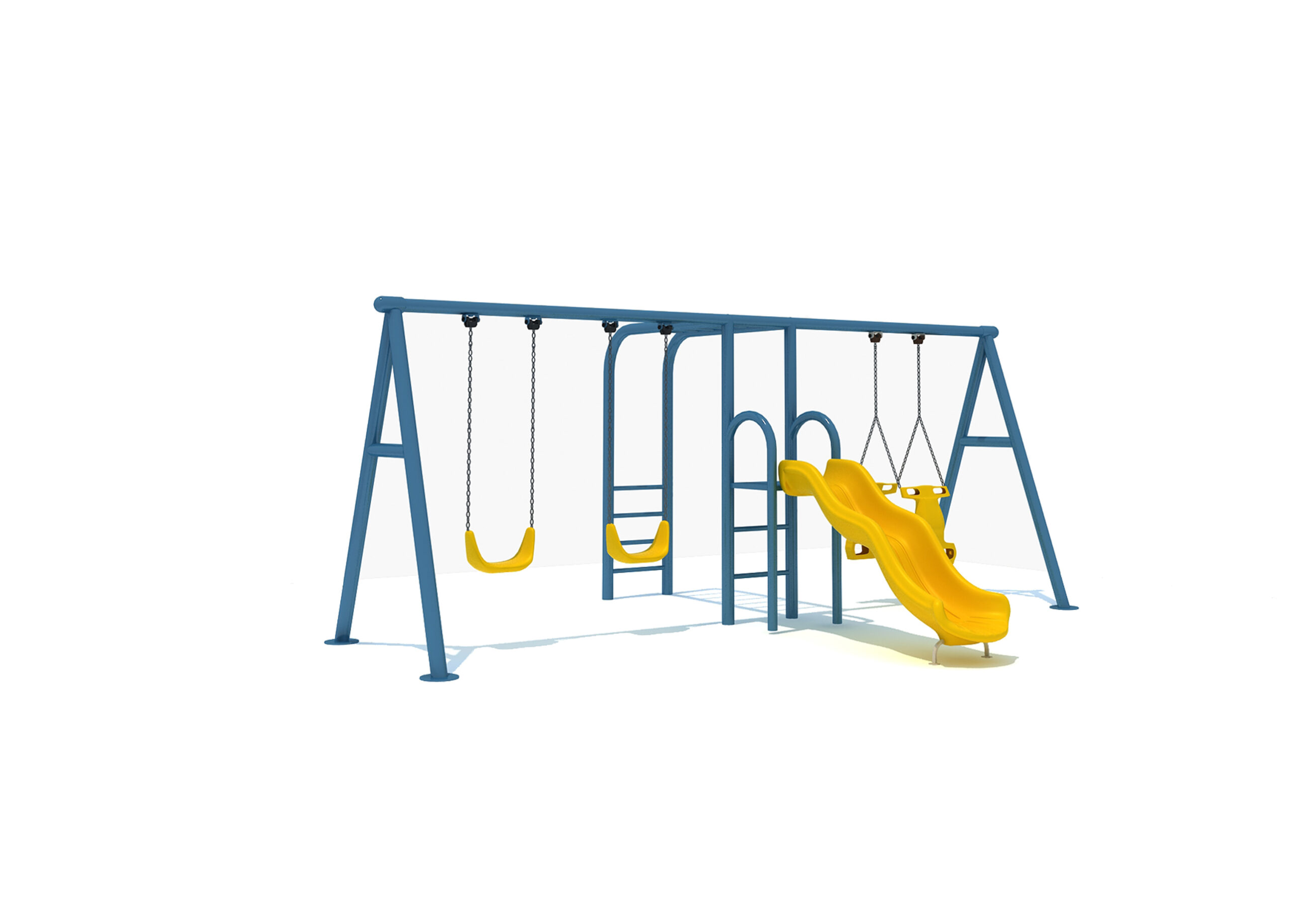 - Acero galvanizado, cadenas de acero inoxidable, asientos en goma y tobogán en LLDPE