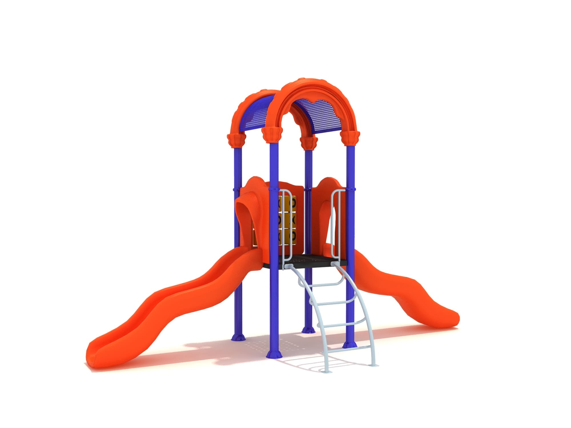 Estructura en acero galvanizado, plasticos en rotomoldeo,plataforma y escaleras con recubrimiento en PVC.