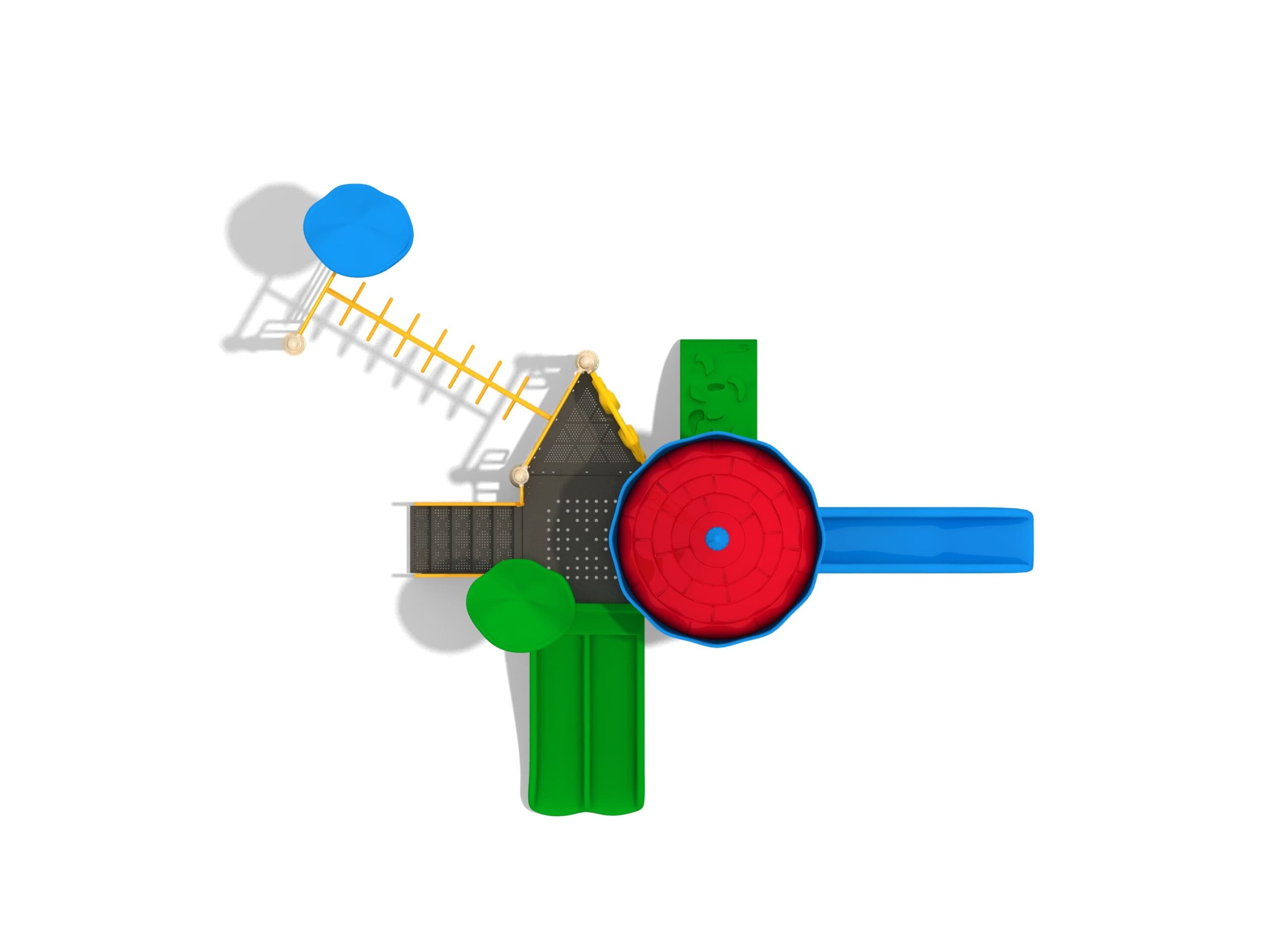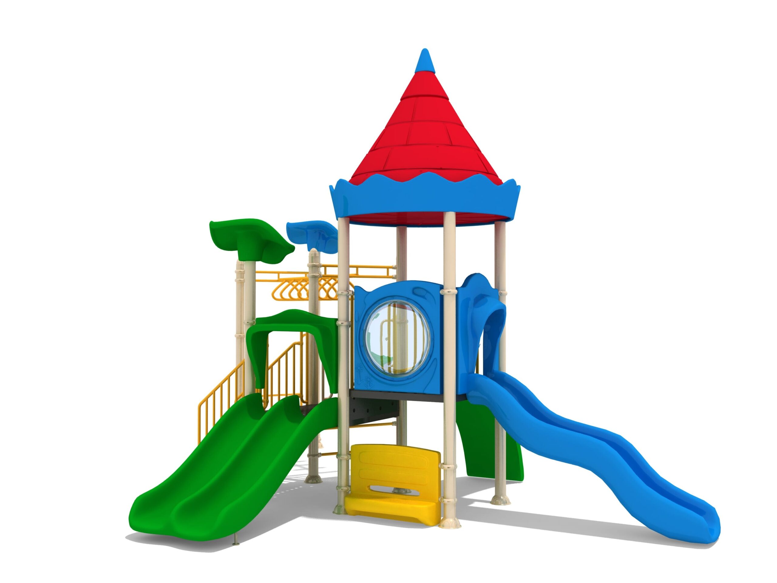 Estructura en acero galvanizado, plasticos en rotomoldeo,plataforma y escaleras con recubrimiento en PVC.
