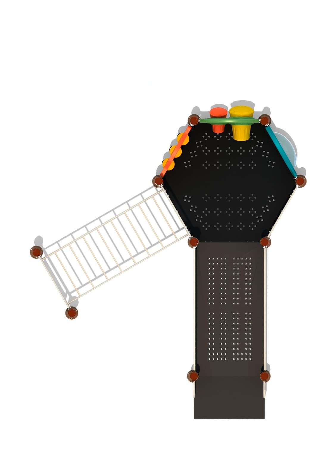 - LLDPE. Tubos de acero galvanizado, partes plásticas rotomoldeo, deck y escaleras con recubrimiento de goma.