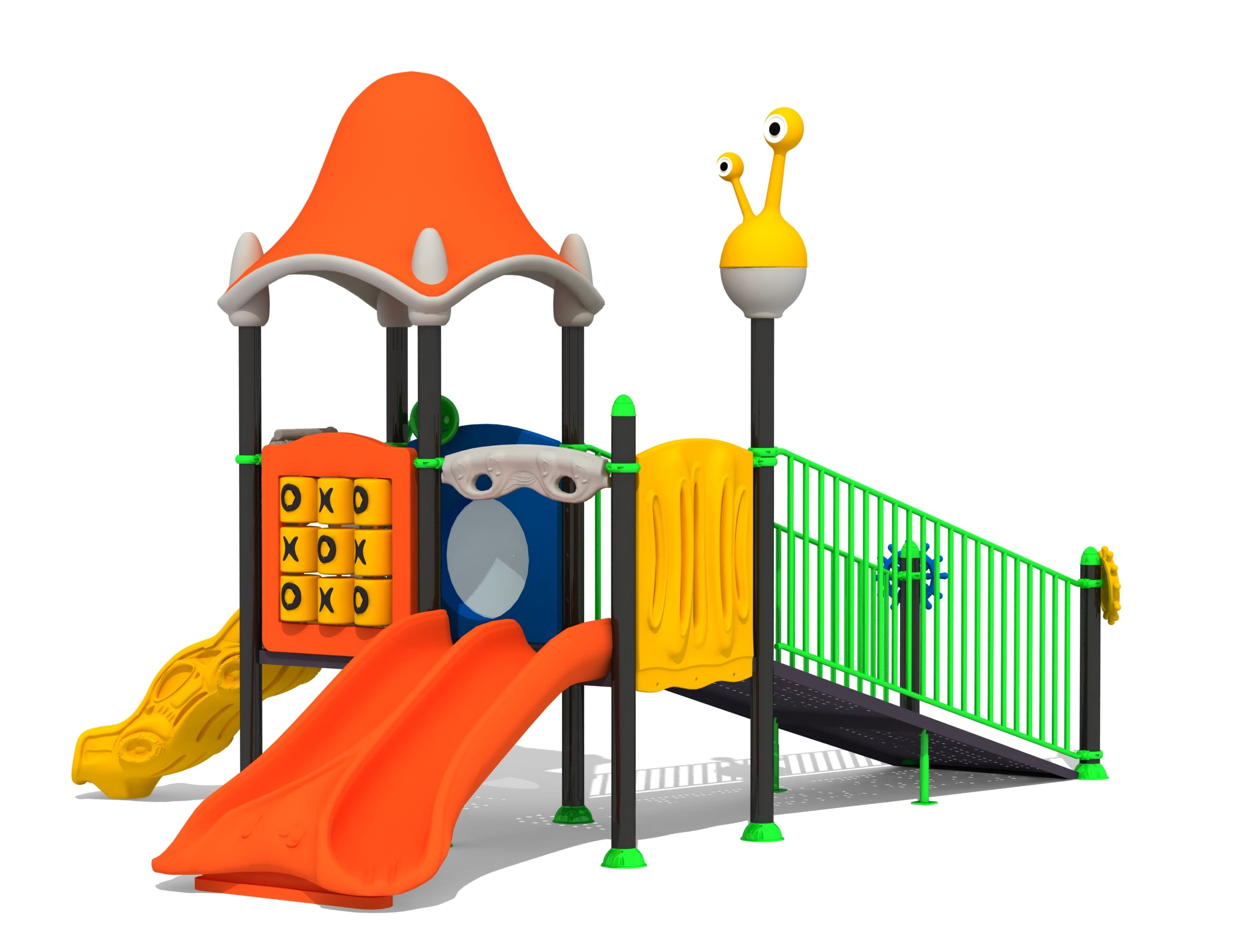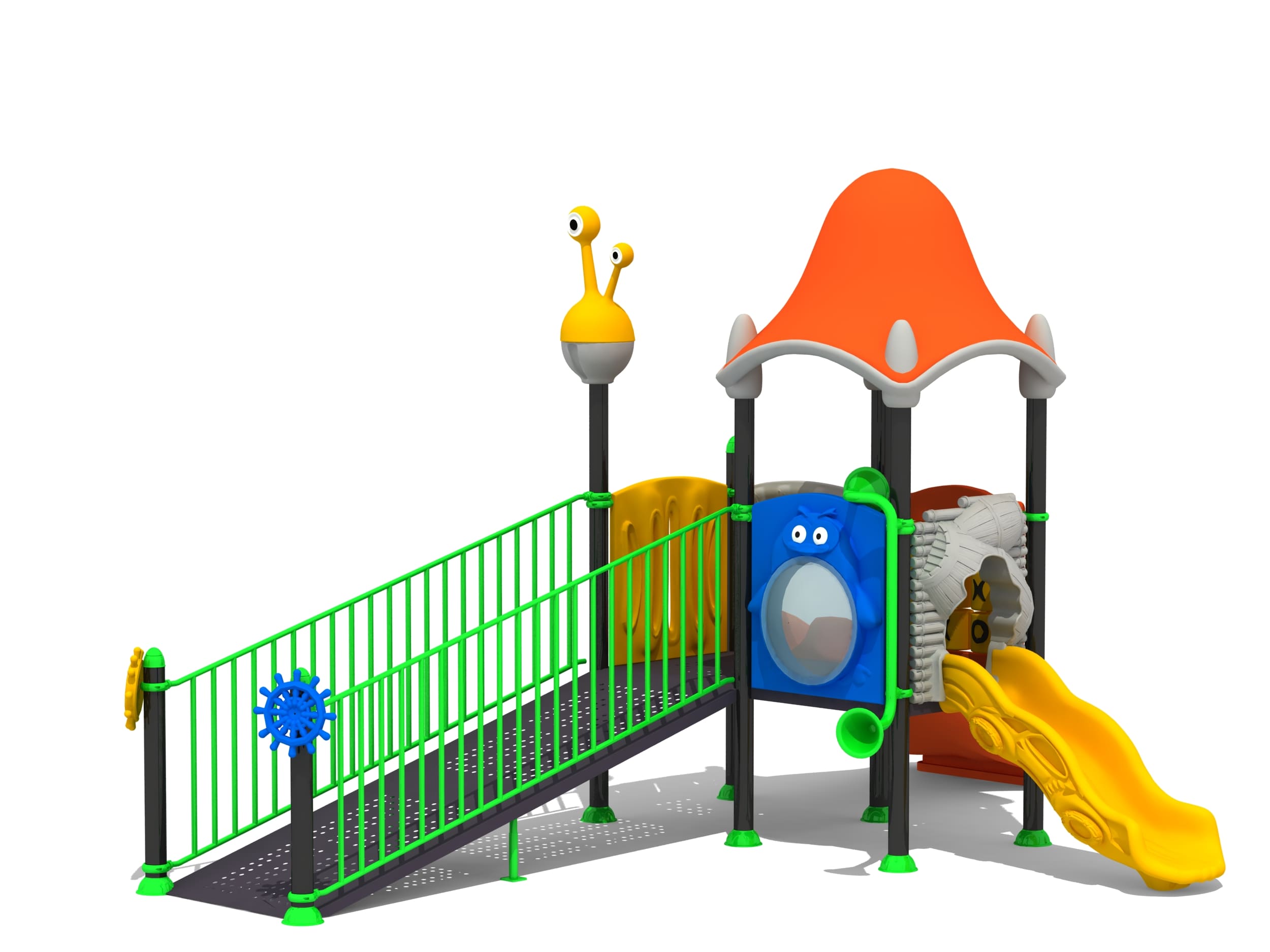 Acero galvanizado, decks y escaleras recubiertas por PVC y plásticos en rotomoldeo LLDPE.