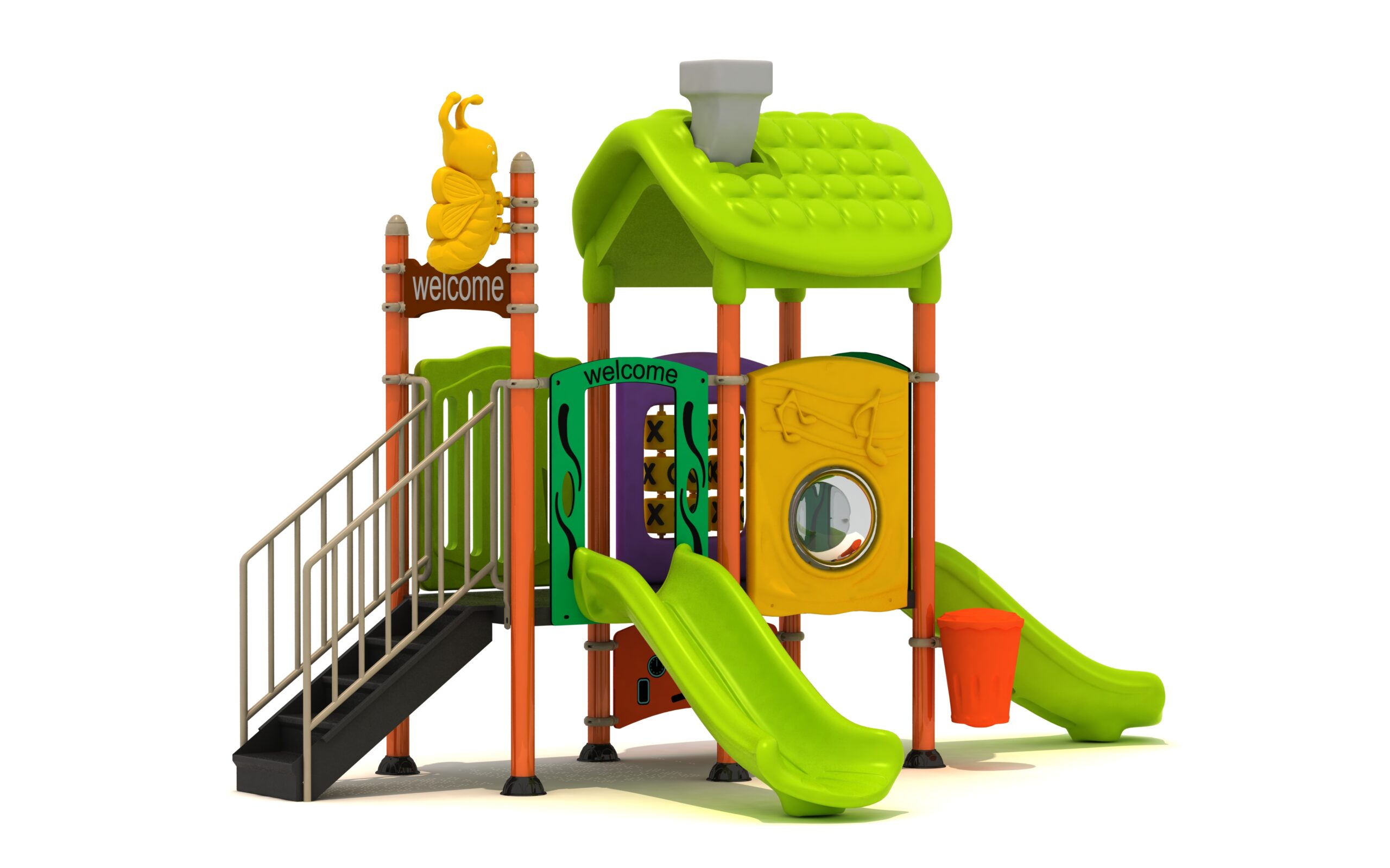 Estructura de acero galvanizado, escaleras y plataformas recubrimiento en PVC.