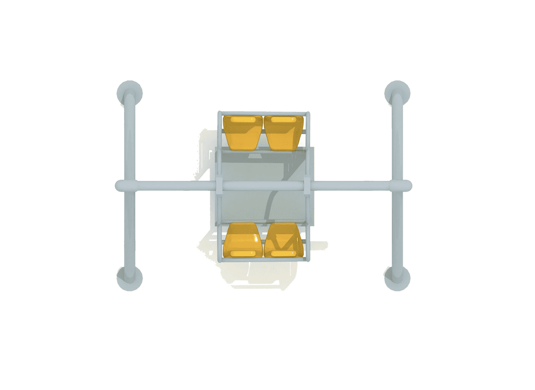 • Acero galvanizado, cadenas en acero inoxidble y asientos en goma.