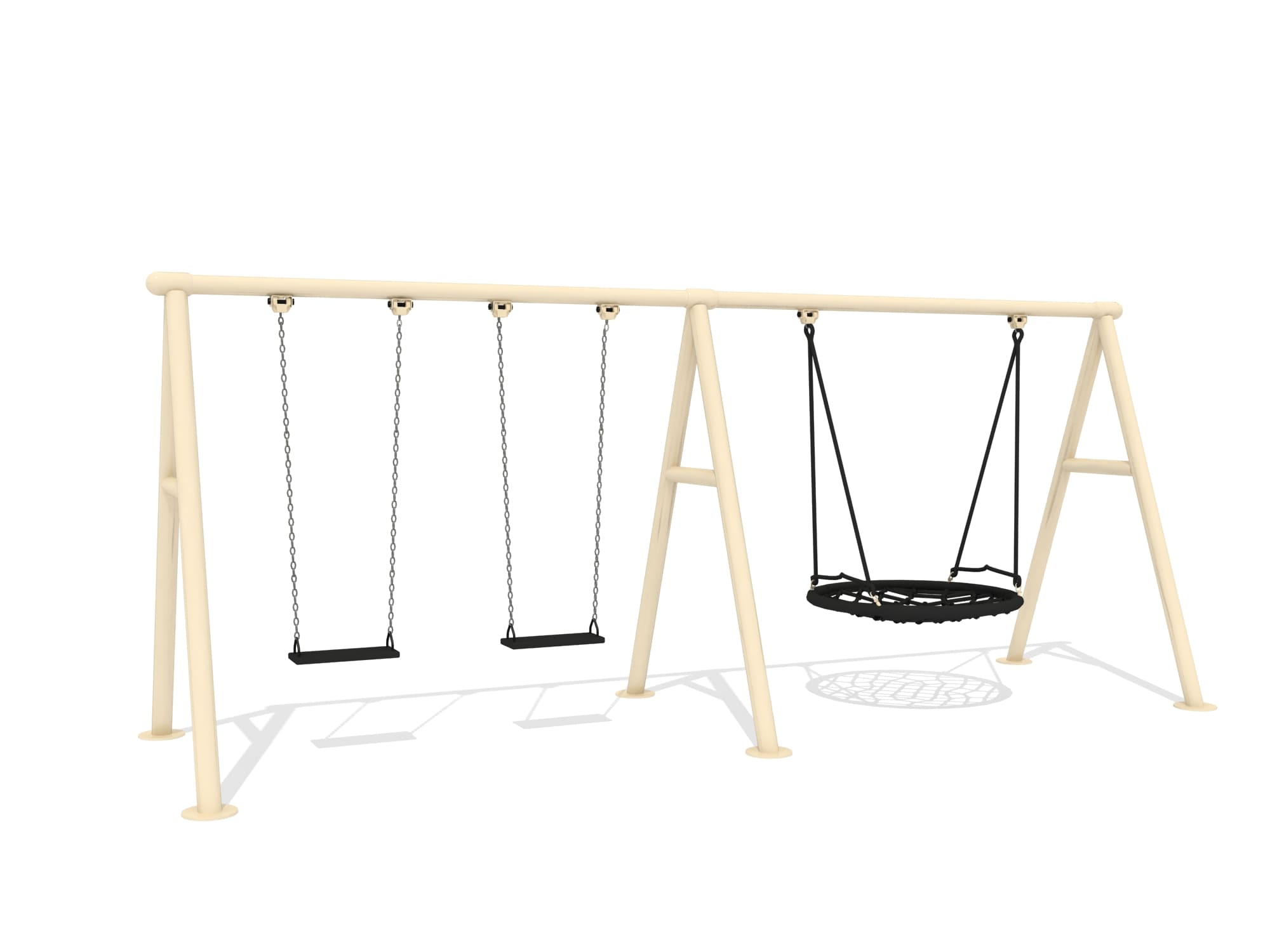 Acero galvanizado, cadenas de acero inoxidable, asientos de pvc.