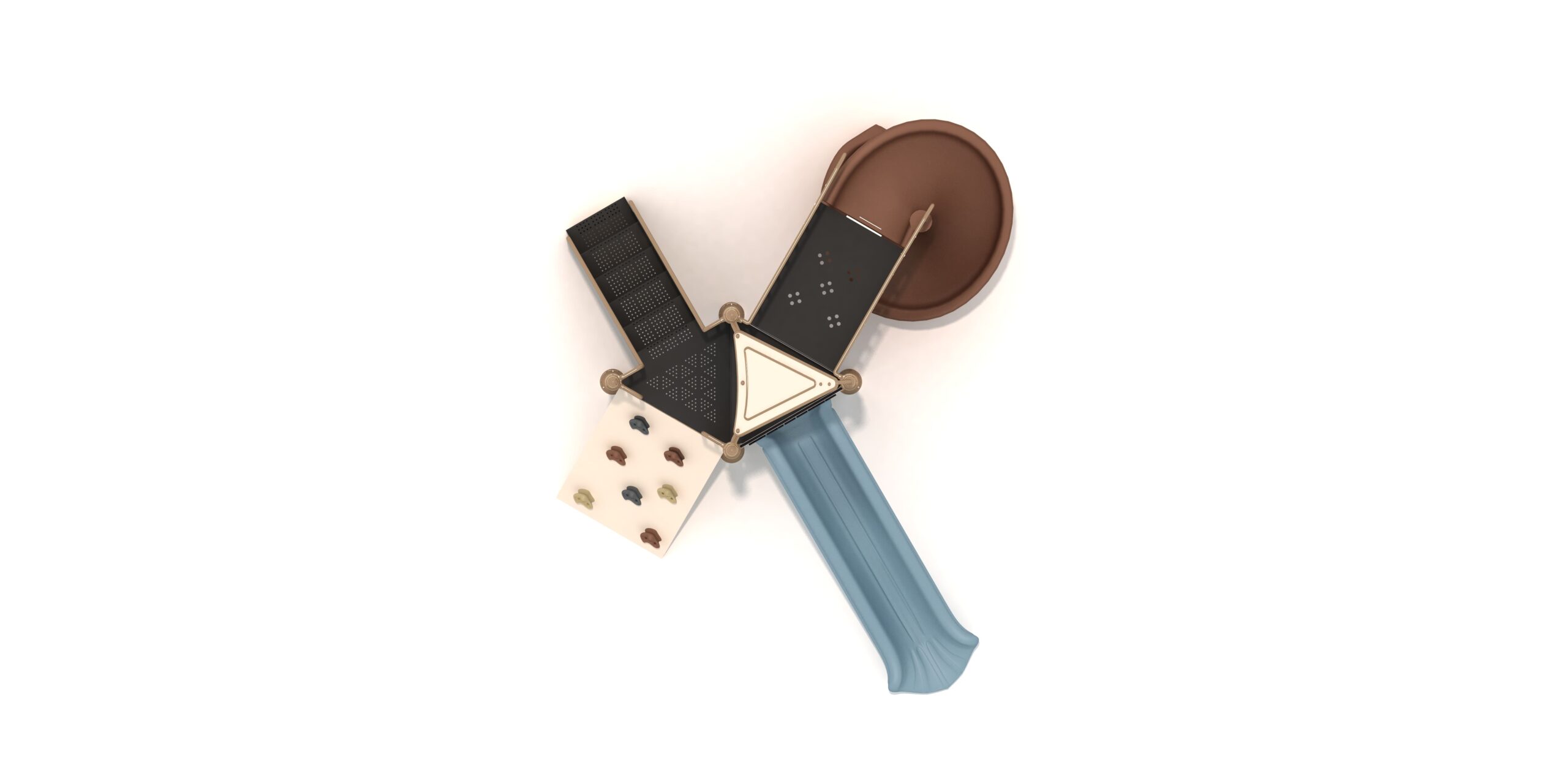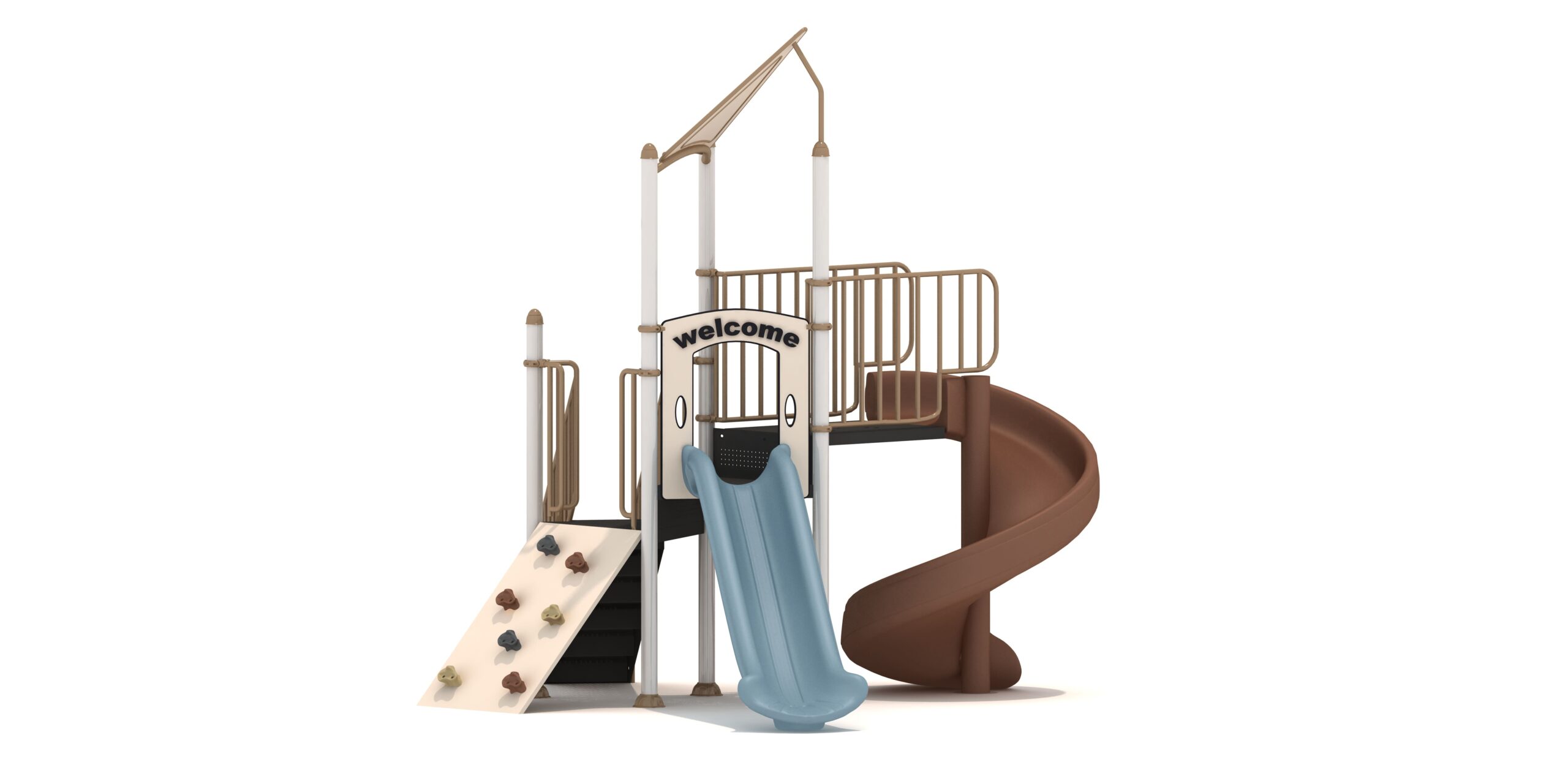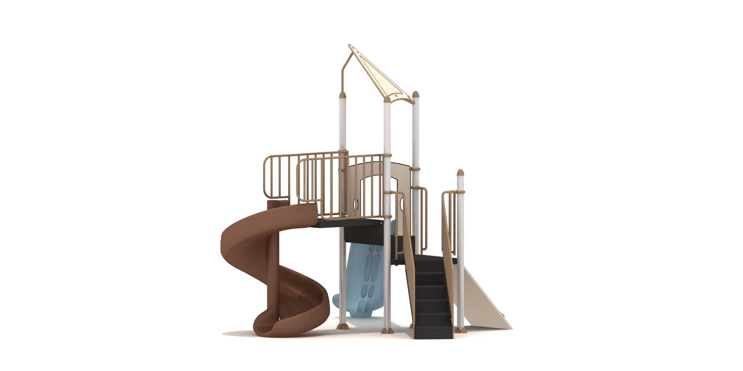 Estructura en acero galvanizado, plasticos en rotomoldeo,plataforma y escaleras con recubrimiento en PVC.